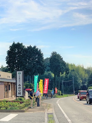 令和4年7月15日から21日まで実施された「おおいた夏の事故ゼロ運動」の一環として、33名のスタッフがみのり村(杵築市日野)前の国道213号線で街頭指導を行いました。