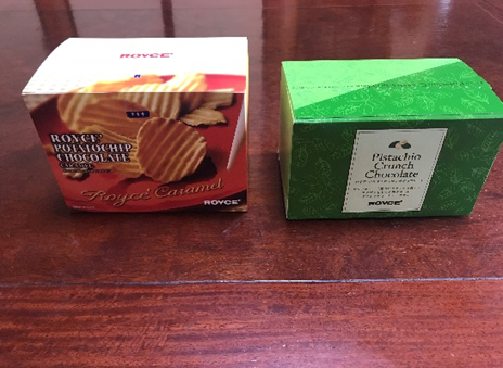 以前テレビで、ロイズの商品のなかにチョコレートでコーティングされた「ポテトチップチョコレート」がおいしいと、放送されていたことを思い出し、「ポテトチップチョコレート」を購入することに決定。 いざ買おうとするとオリジナル味やキャラメル味など数種類あり何味にするか迷いましたが、キャラメル味に決め、楽しみました。 Y・K